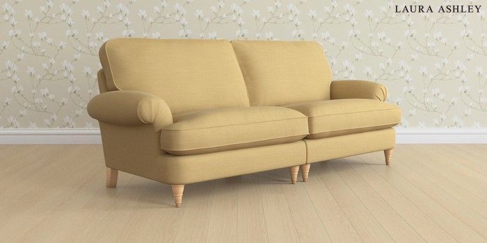 6.12.1 Buy Beaumaris by Laura Ashley 4 Seater Sofa Kinsham Ochre Yellow Low Turned - Light Oak from the Next UK online shop Click here to use our accessible website