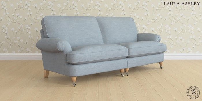 6.12.1 Buy Beaumaris by Laura Ashley 4 Seater Sofa Kinsham Seaspray Blue Low Chrome Castor - Light Oak from the Next UK online shop Click here to use our accessible website