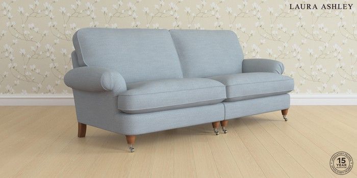 6.12.1 Buy Beaumaris by Laura Ashley 4 Seater Sofa Kinsham Seaspray Blue Low Chrome Castor - Teak from the Next UK online shop Click here to use our accessible website