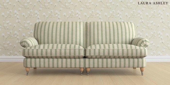 6.12.13 Buy Beaumaris by Laura Ashley 4 Seater Sofa Kinsham Stripe Hedgerow Green Low Chrome Castor - Light Oak from the Next UK online shop Click here to use our accessible website