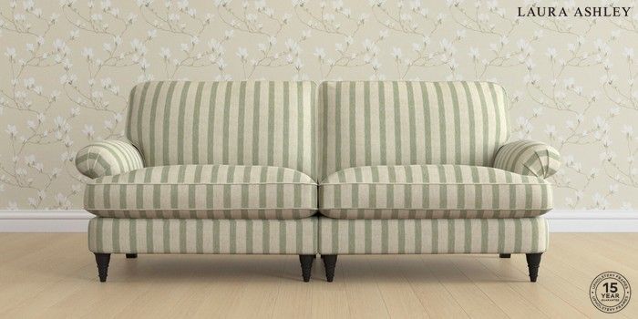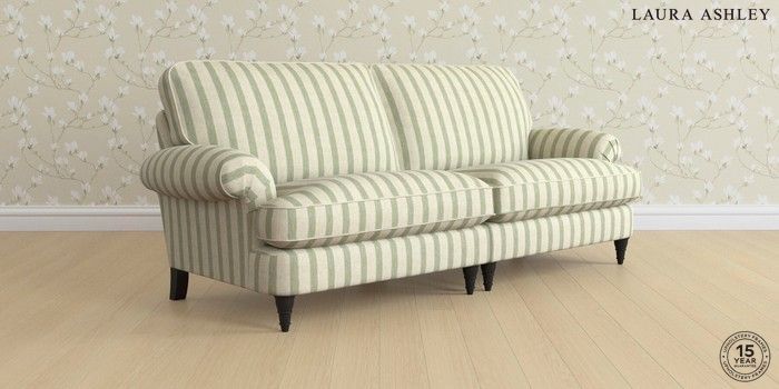 6.12.13 Buy Beaumaris by Laura Ashley 4 Seater Sofa Kinsham Stripe Hedgerow Green Low Turned - Black from the Next UK online shop Click here to use our accessible website