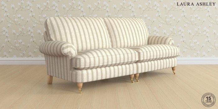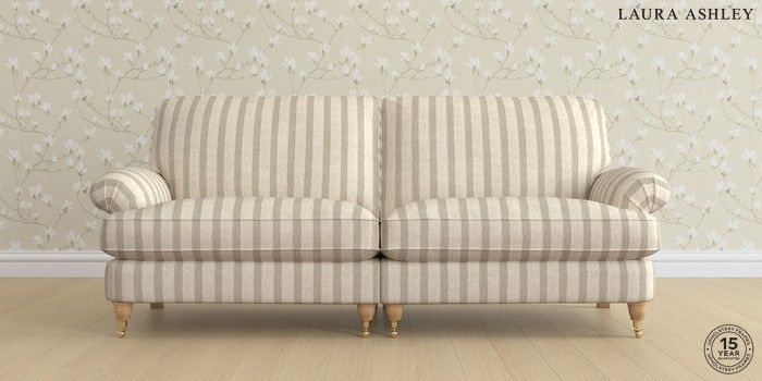 6.12.1 Buy Beaumaris by Laura Ashley 4 Seater Sofa Kinsham Stripe Natural Low Brass Castor - Light Oak from the Next UK online shop Click here to use our accessible website