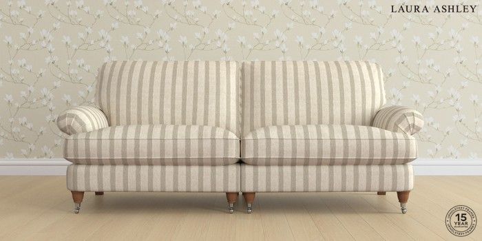 6.12.1 Buy Beaumaris by Laura Ashley 4 Seater Sofa Kinsham Stripe Natural Low Chrome Castor - Teak from the Next UK online shop Click here to use our accessible website