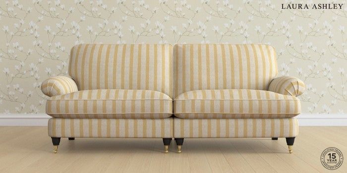 7.0.3 Buy Beaumaris by Laura Ashley 4 Seater Sofa Kinsham Stripe Ochre Yellow Low Brass Castor - Black from the Next UK online shop Click here to use our accessible website