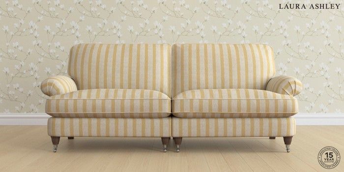 7.0.3 Buy Beaumaris by Laura Ashley 4 Seater Sofa Kinsham Stripe Ochre Yellow Low Chrome Castor - Chestnut from the Next UK online shop Click here to use our accessible website