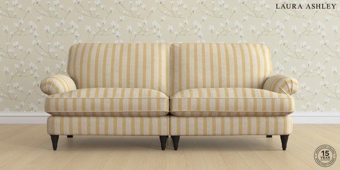 7.0.3 Buy Beaumaris by Laura Ashley 4 Seater Sofa Kinsham Stripe Ochre Yellow Low Turned - Black from the Next UK online shop Click here to use our accessible website