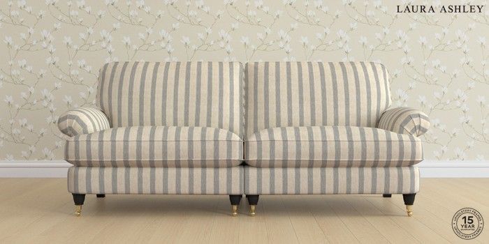 6.12.1 Buy Beaumaris by Laura Ashley 4 Seater Sofa Kinsham Stripe Seaspray Blue Low Brass Castor - Black from the Next UK online shop Click here to use our accessible website