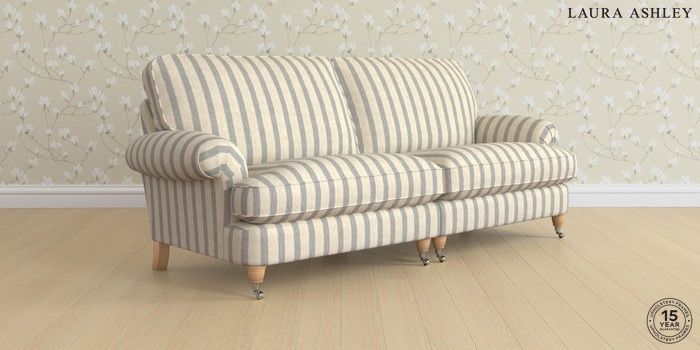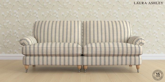 6.12.1 Buy Beaumaris by Laura Ashley 4 Seater Sofa Kinsham Stripe Seaspray Blue Low Chrome Castor - Light Oak from the Next UK online shop Click here to use our accessible website