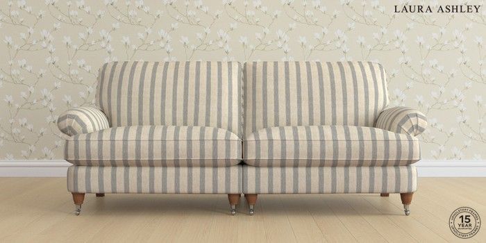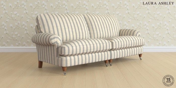 6.12.1 Buy Beaumaris by Laura Ashley 4 Seater Sofa Kinsham Stripe Seaspray Blue Low Chrome Castor - Teak from the Next UK online shop Click here to use our accessible website