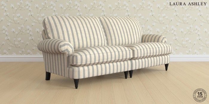 6.12.1 Buy Beaumaris by Laura Ashley 4 Seater Sofa Kinsham Stripe Seaspray Blue Low Turned - Black from the Next UK online shop Click here to use our accessible website