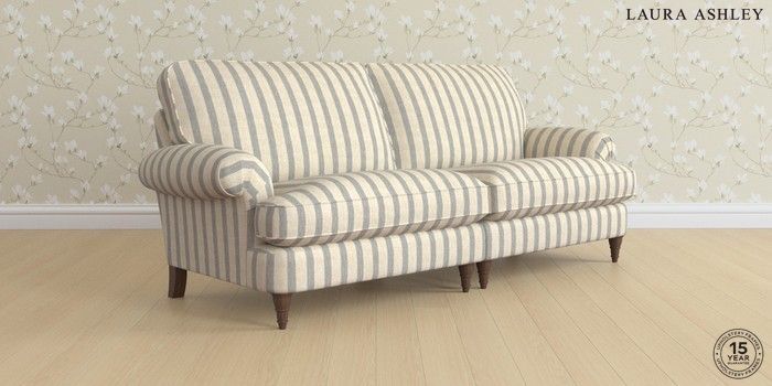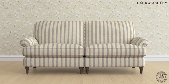 6.12.1 Buy Beaumaris by Laura Ashley 4 Seater Sofa Kinsham Stripe Seaspray Blue Low Turned - Chestnut from the Next UK online shop Click here to use our accessible website