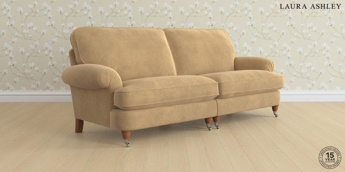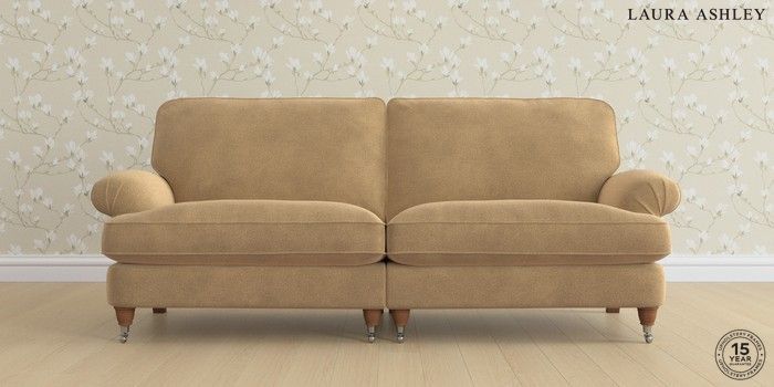 6.12.1 Buy Beaumaris by Laura Ashley 4 Seater Sofa Lundar Chenille Caramel Natural Low Chrome Castor - Teak from the Next UK online shop Click here to use our accessible website