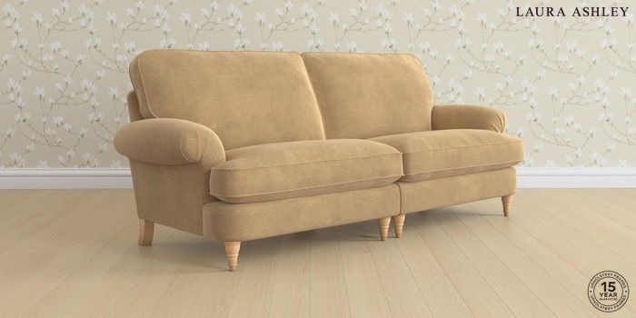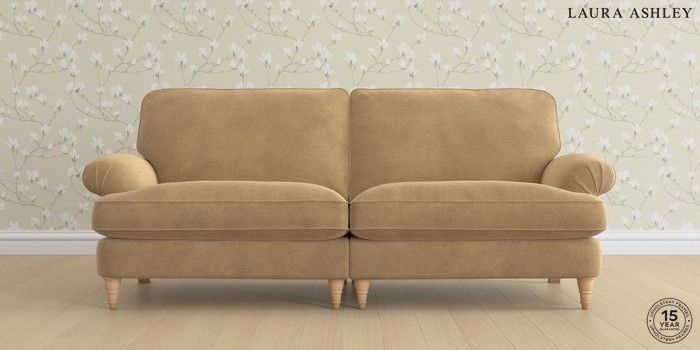 6.12.1 Buy Beaumaris by Laura Ashley 4 Seater Sofa Lundar Chenille Caramel Natural Low Turned - Light Oak from the Next UK online shop Click here to use our accessible website