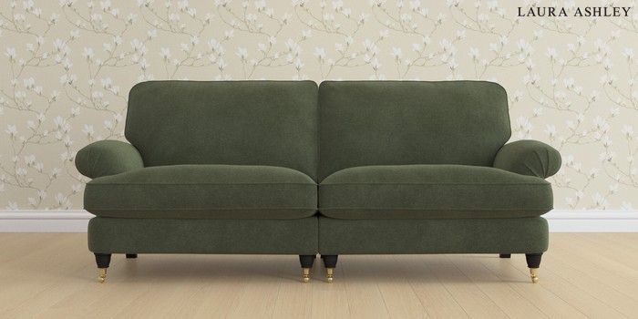 6.12.1 Buy Beaumaris by Laura Ashley 4 Seater Sofa Lundar Chenille Ivy Green Low Brass Castor - Black from the Next UK online shop Click here to use our accessible website