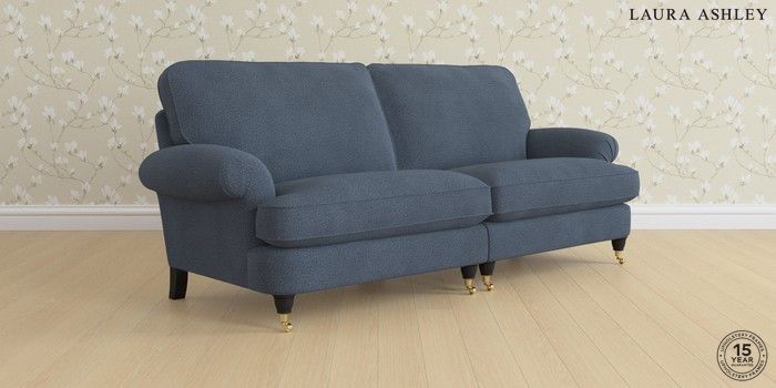 6.12.1 Buy Beaumaris by Laura Ashley 4 Seater Sofa Lundar Chenille Navy Blue Low Brass Castor - Black from the Next UK online shop Click here to use our accessible website