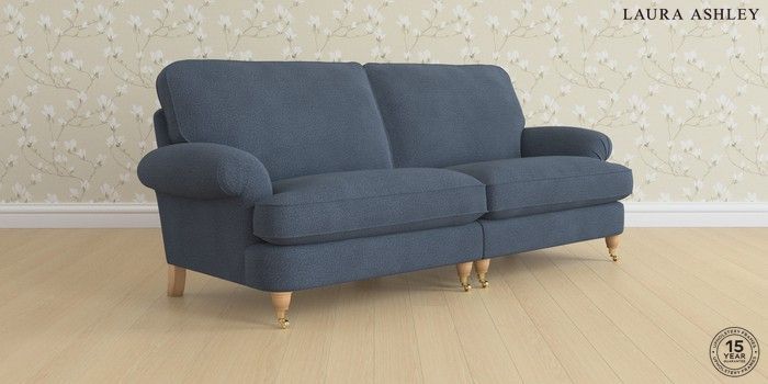 6.12.1 Buy Beaumaris by Laura Ashley 4 Seater Sofa Lundar Chenille Navy Blue Low Brass Castor - Light Oak from the Next UK online shop Click here to use our accessible website