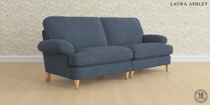 6.12.1 Buy Beaumaris by Laura Ashley 4 Seater Sofa Lundar Chenille Navy Blue Low Turned - Light Oak from the Next UK online shop Click here to use our accessible website