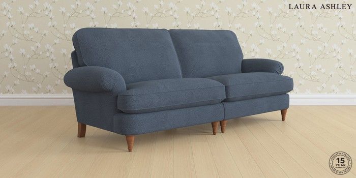 6.12.1 Buy Beaumaris by Laura Ashley 4 Seater Sofa Lundar Chenille Navy Blue Low Turned - Teak from the Next UK online shop Click here to use our accessible website