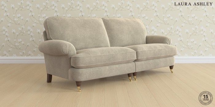 6.12.1 Buy Beaumaris by Laura Ashley 4 Seater Sofa Lundar Chenille Truffle Natural Low Brass Castor - Chestnut from the Next UK online shop Click here to use our accessible website