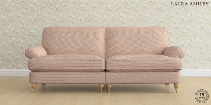 6.12.1 Buy Beaumaris by Laura Ashley 4 Seater Sofa Melbreak Geo Chalk Pink Low Brass Castor - Light Oak from the Next UK online shop Click here to use our accessible website