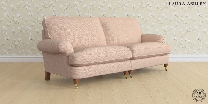 6.12.1 Buy Beaumaris by Laura Ashley 4 Seater Sofa Melbreak Geo Chalk Pink Low Brass Castor - Teak from the Next UK online shop Click here to use our accessible website
