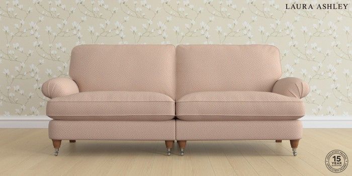 6.12.1 Buy Beaumaris by Laura Ashley 4 Seater Sofa Melbreak Geo Chalk Pink Low Chrome Castor - Teak from the Next UK online shop Click here to use our accessible website