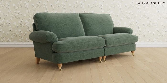 6.12.1 Buy Beaumaris by Laura Ashley 4 Seater Sofa Nantmor Fern Green Low Brass Castor - Light Oak from the Next UK online shop Click here to use our accessible website
