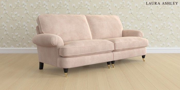 6.12.1 Buy Beaumaris by Laura Ashley 4 Seater Sofa Orla Chalk Pink Low Brass Castor - Black from the Next UK online shop Click here to use our accessible website