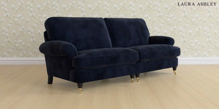 6.12.1 Buy Beaumaris by Laura Ashley 4 Seater Sofa Orla Midnight Navy Low Brass Castor - Black from the Next UK online shop Click here to use our accessible website