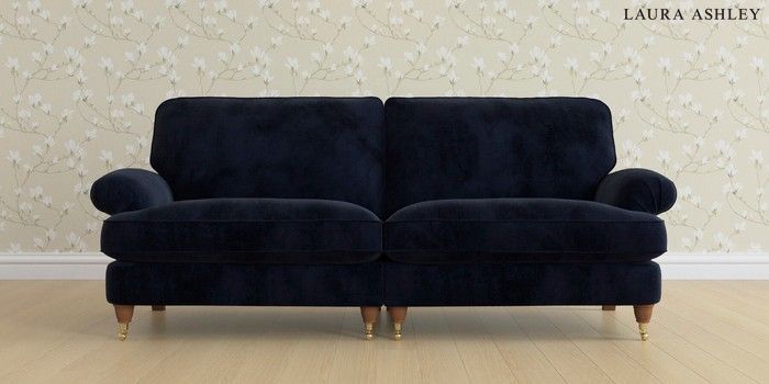 6.12.1 Buy Beaumaris by Laura Ashley 4 Seater Sofa Orla Midnight Navy Low Brass Castor - Teak from the Next UK online shop Click here to use our accessible website