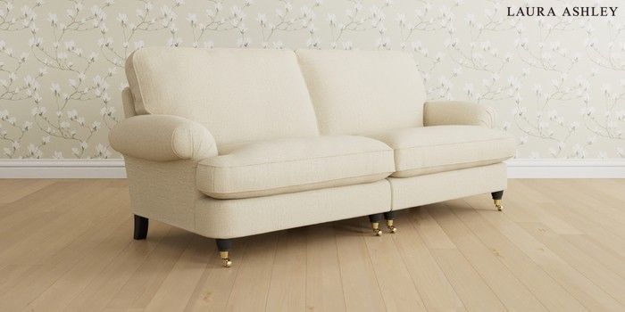 6.12.1 Buy Beaumaris by Laura Ashley 4 Seater Sofa Orla Oyster Natural Low Brass Castor - Black from the Next UK online shop Click here to use our accessible website