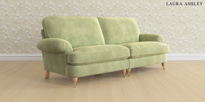 6.12.1 Buy Beaumaris by Laura Ashley 4 Seater Sofa Orla Pale Hedgerow Green Low Brass Castor - Light Oak from the Next UK online shop Click here to use our accessible website