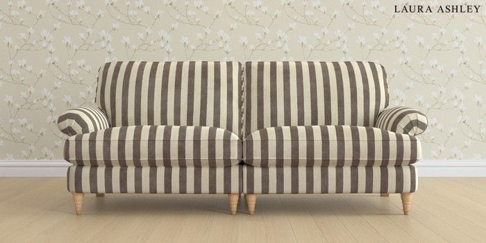 6.12.13 Buy Beaumaris by Laura Ashley 4 Seater Sofa Orla Stripe Dark Truffle Natural Low Turned - Light Oak from the Next UK online shop Click here to use our accessible website