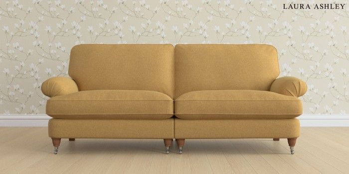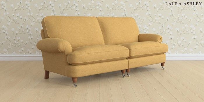 6.12.13 Buy Beaumaris by Laura Ashley 4 Seater Sofa Peyton Ochre Yellow Low Chrome Castor - Teak from the Next UK online shop Click here to use our accessible website