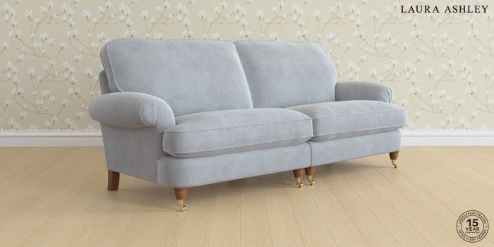 6.12.1 Buy Beaumaris by Laura Ashley 4 Seater Sofa Peyton Powder Blue Low Brass Castor - Teak from the Next UK online shop Click here to use our accessible website