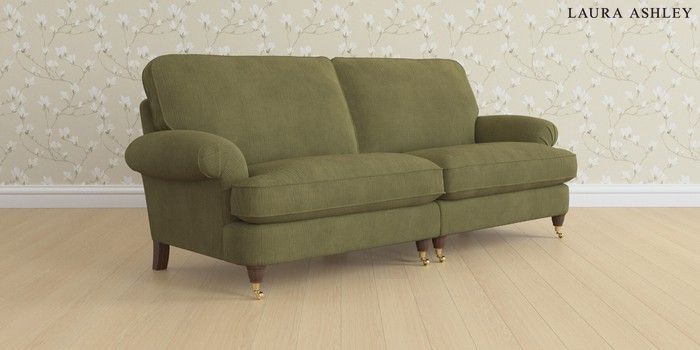 6.12.1 Buy Beaumaris by Laura Ashley 4 Seater Sofa Sinclair Cord Ivy Green Low Brass Castor - Chestnut from the Next UK online shop Click here to use our accessible website