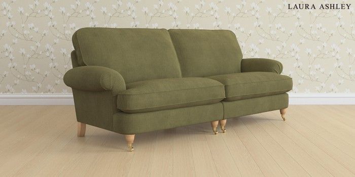 6.12.1 Buy Beaumaris by Laura Ashley 4 Seater Sofa Sinclair Cord Ivy Green Low Brass Castor - Light Oak from the Next UK online shop Click here to use our accessible website