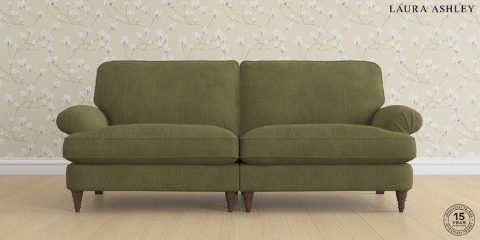 6.12.1 Buy Beaumaris by Laura Ashley 4 Seater Sofa Sinclair Cord Ivy Green Low Turned - Chestnut from the Next UK online shop Click here to use our accessible website