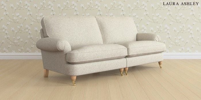 6.12.1 Buy Beaumaris by Laura Ashley 4 Seater Sofa Tichwell Stone Natural Low Brass Castor - Light Oak from the Next UK online shop Click here to use our accessible website