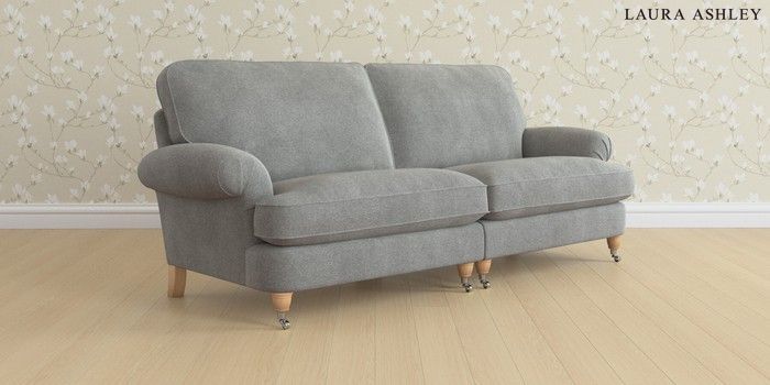 6.12.13 Buy Beaumaris by Laura Ashley 4 Seater Sofa Wooton Dark Steel Grey Low Chrome Castor - Light Oak from the Next UK online shop Click here to use our accessible website