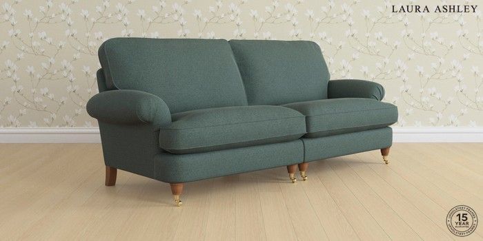 6.12.1 Buy Beaumaris by Laura Ashley 4 Seater Sofa Wooton Forest Green Low Brass Castor - Teak from the Next UK online shop Click here to use our accessible website