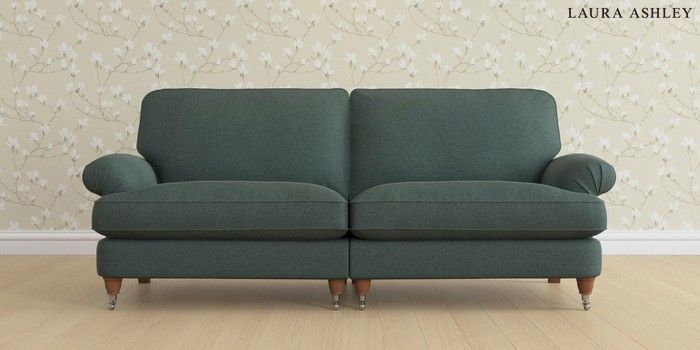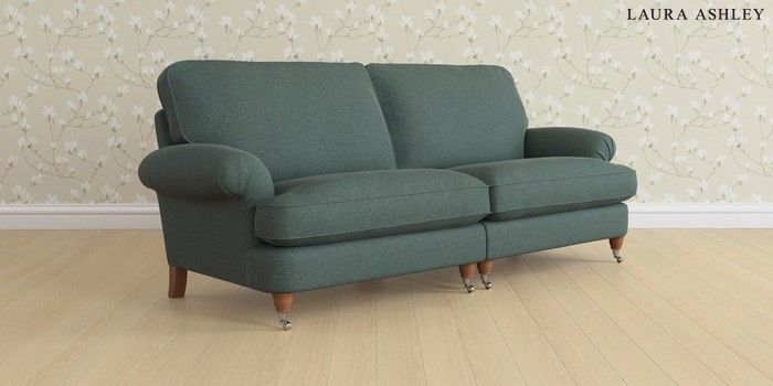 6.12.13 Buy Beaumaris by Laura Ashley 4 Seater Sofa Wooton Forest Green Low Chrome Castor - Teak from the Next UK online shop Click here to use our accessible website