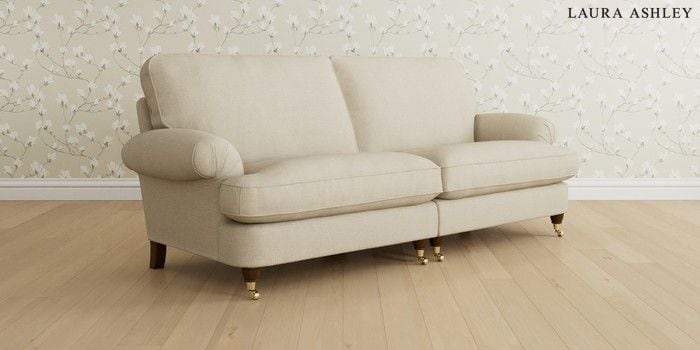 6.12.1 Buy Beaumaris by Laura Ashley 4 Seater Sofa Wooton Natural Low Brass Castor - Teak from the Next UK online shop Click here to use our accessible website