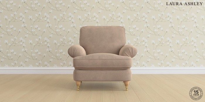 6.12.1 Buy Beaumaris by Laura Ashley Armchair Ailsworth Mink Natural Low Brass Castor - Light Oak from the Next UK online shop Click here to use our accessible website
