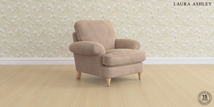 6.12.1 Buy Beaumaris by Laura Ashley Armchair Ailsworth Mink Natural Low Turned - Light Oak from the Next UK online shop Click here to use our accessible website