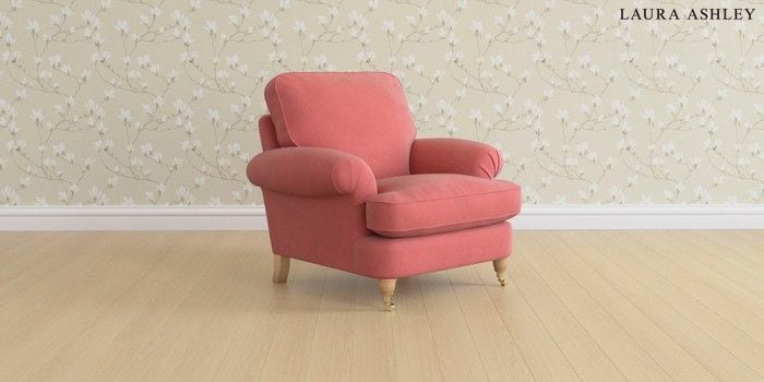6.12.13 Buy Beaumaris by Laura Ashley Armchair Ailsworth Old Rose Pink Low Brass Castor - Light Oak from the Next UK online shop Click here to use our accessible website