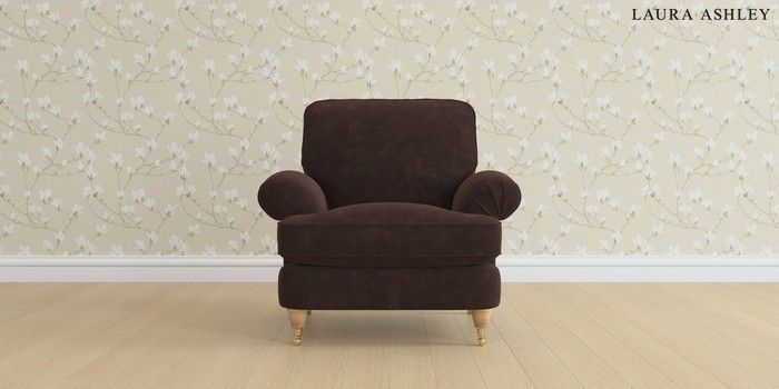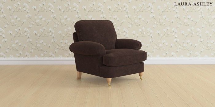 6.12.13 Buy Beaumaris by Laura Ashley Armchair Alwyn Velvet Chocolate Brown Low Brass Castor - Light Oak from the Next UK online shop Click here to use our accessible website