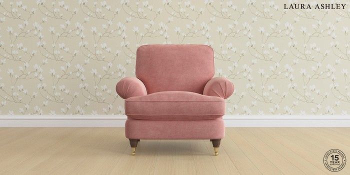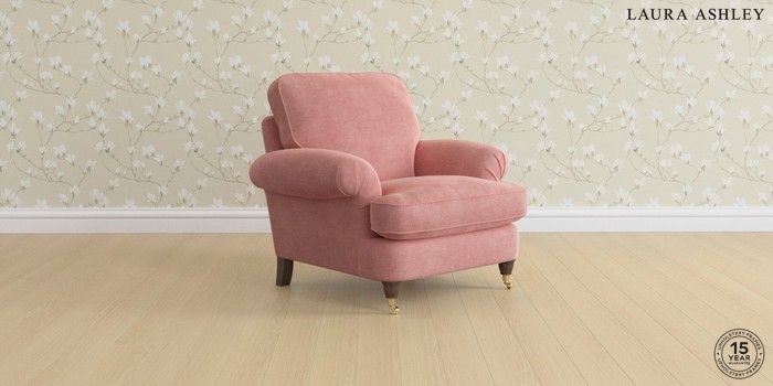 6.12.1 Buy Beaumaris by Laura Ashley Armchair Bainton Old Rose Pink Low Brass Castor - Chestnut from the Next UK online shop Click here to use our accessible website