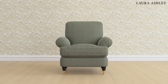 6.12.1 Buy Beaumaris by Laura Ashley Armchair Birchgrove Check Olive Green Low Brass Castor - Black from the Next UK online shop Click here to use our accessible website