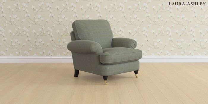 6.12.13 Buy Beaumaris by Laura Ashley Armchair Birchgrove Check Olive Green Low Brass Castor - Black from the Next UK online shop Click here to use our accessible website